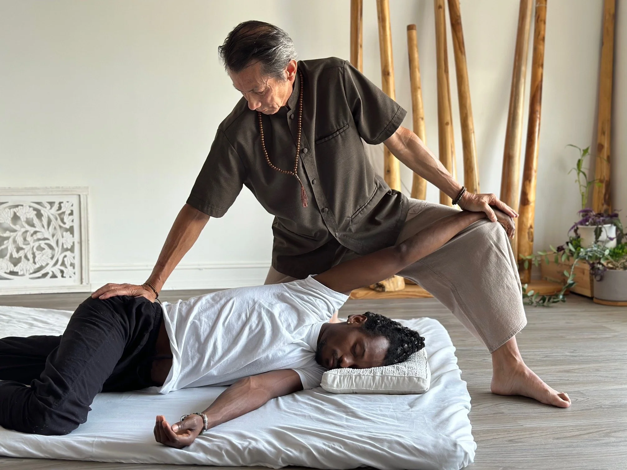 David Roma is a highly respected Thai massage teacher known for his deep knowledge, compassionate presence, and unique healing touch. Praised for his graceful technique and skillful hands, David creates a calming, transformative experience noted by clients worldwide. Many students and clients highlight his ability to induce deep relaxation, healing, and pain relief.